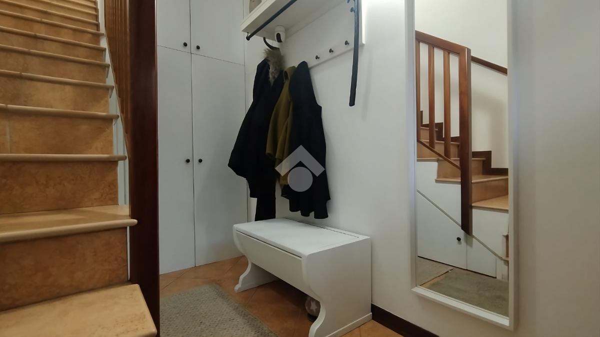 L'immobile si compone di un comodo ingresso sul vano scale, dotato di ampio ripostiglio sottoscala.